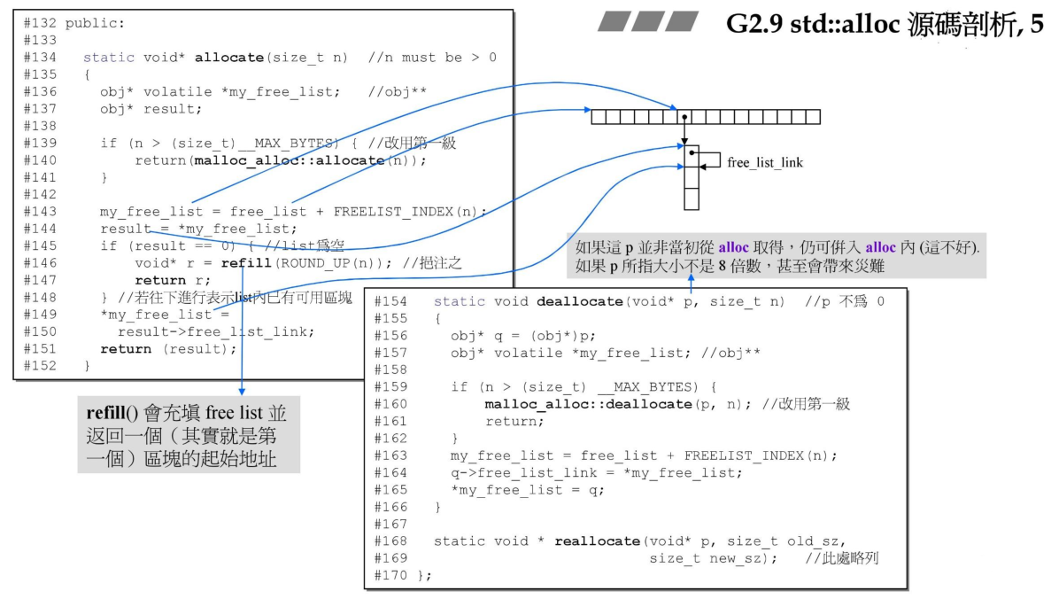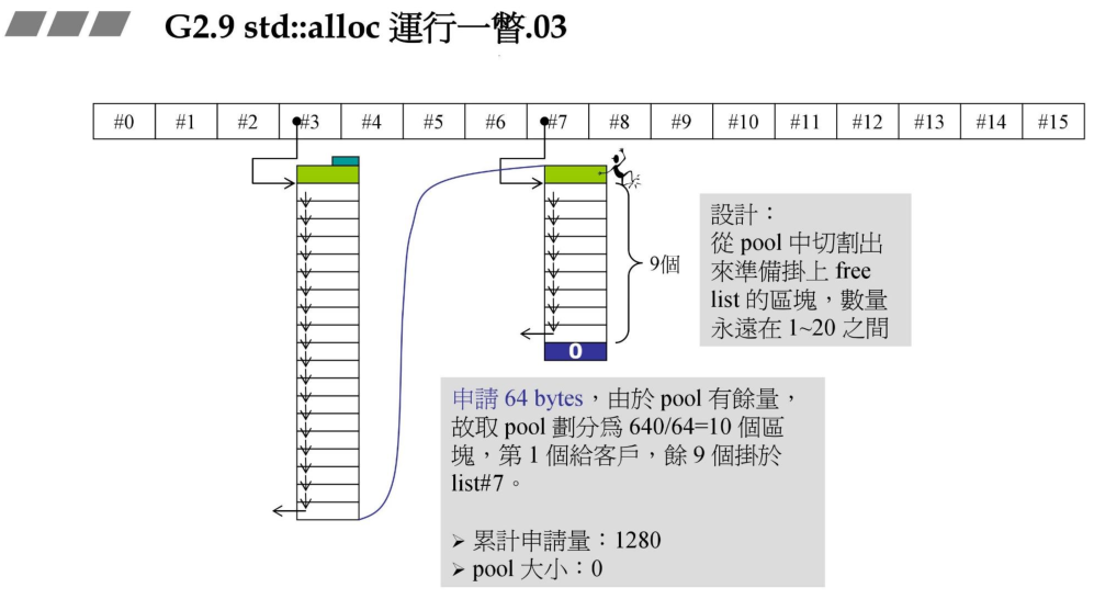 以下直接通过截取PPT内容来看下std::alloc的内存分配