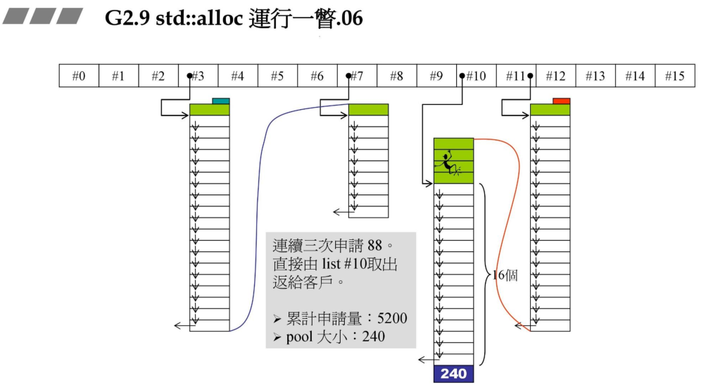 5、然后用户连续三次申请88Bytes,则直接从#10链表中取出返回给用户即可。